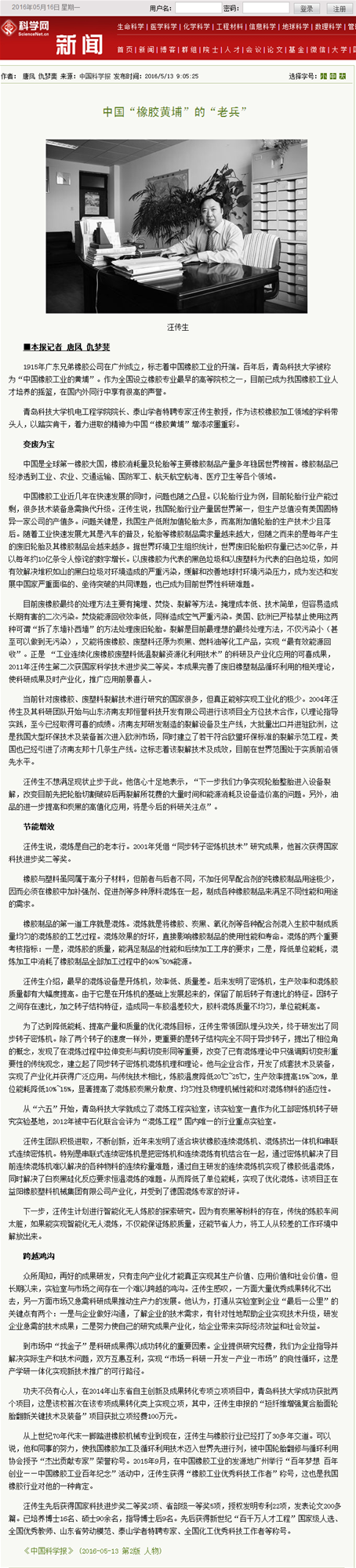 4月21日,应《中国科学报》的邀请,澳门十大信誉好的网站院长汪传生教授接受了该报记者的专访。