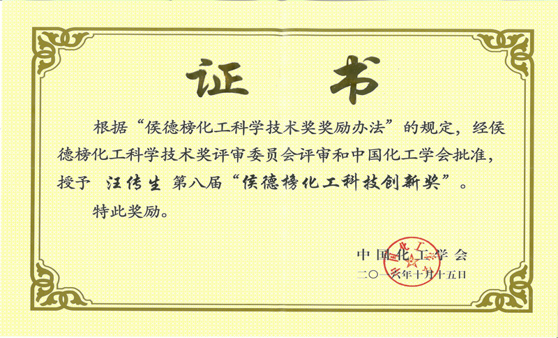 10月15日,中国化工学会在北京化工大学会议中心举行第八届“侯德榜化工科学技术奖”颁奖典礼。