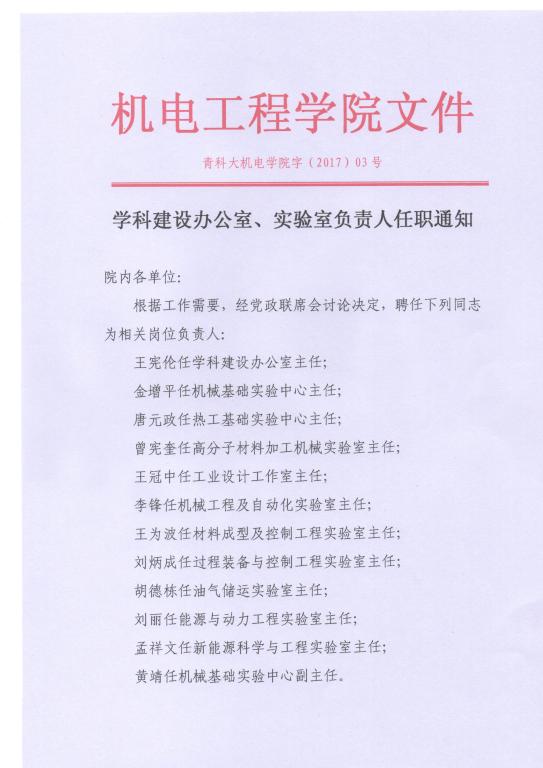澳门十大信誉好的网站学科建设办公室、实验室负责人任职通知
