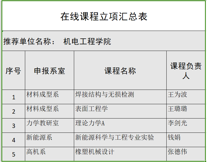 根据《关于推进学院省在线课程增量建设的通知》和《澳门十大信誉好的网站2024-2027聘期高水平教学业绩资助办法》,学院组织各专业申报新建在线课程,共有5门课程提交材料,经评委评审,现拟对以下5门课程进行立项,所有立项课程负责人需在规定时间,达成规定建设目标,特此公示。公示期三天(2024年7月22日-7月24日),如有异议,请在公示期内向澳门十大信誉好的网站教学办反映。