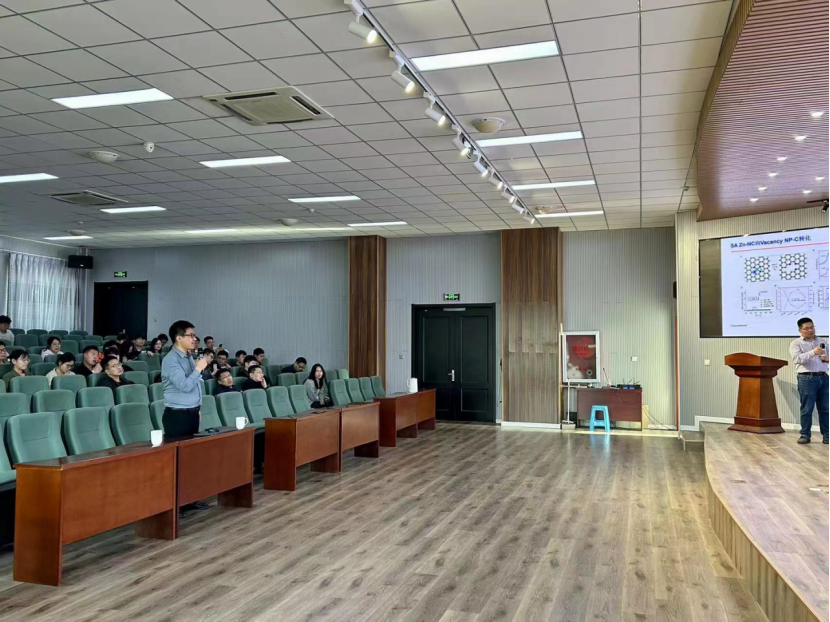 金属和金属氧化物是最广泛使用的电催化材料,但它们存在着选择性低、和稀缺性的问题。正因为如此,无金属碳作为能源转换和存储设备的有前途的电催化剂,已经成为人们非常感兴趣的主题,张国新教授围绕该领域当前所面临的关键性技术问题,在本次报告详细讲解了使用功能化碳材料应用于电催化的技术优势与挑战、并展示了目前该领域取得的前沿研究成果,并与各位老师学生就电催化研究中遇到的实际问题进行了探讨和交流。