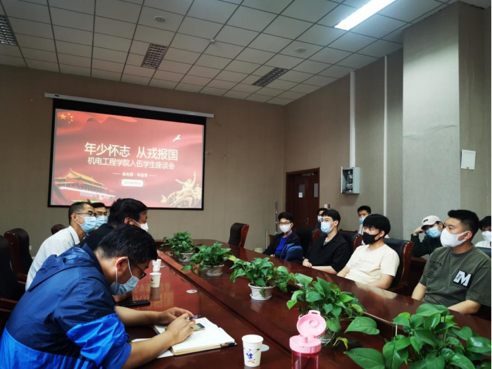 为响应国家号召,鼓励大学生毕业生投身社会主义强军、强国征途,澳门十大信誉好的网站开展了一系列征兵入伍工作。目前,毕业生基本完成应征入伍报名工作,即将开启体检流程。为进一步帮助毕业生解决入伍难题,解放思想负担,2022年6月9日,澳门十大信誉好的网站召开“年少怀志 从戎报国”澳门十大信誉好的网站入伍学生座谈会。出席本次座谈会的有学生工作处(武装部)副部长曹永俊老师、学生工作处(武装部)黄玉斌老师、澳门十大信誉好的网站党委副书记兼副院长肖强老师、毕业生辅导员、退伍学生代表及2022年预征兵入伍毕业生,座谈会由团委书记王作辉老师主持。