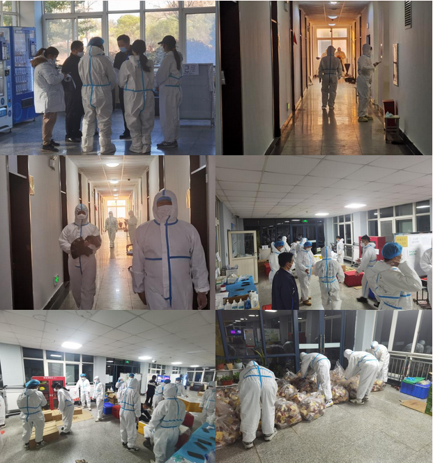 青年志愿者们敢担当、能吃苦、肯奋斗,“层长”马不停蹄、“小分队”各司其职,努力做到严之又严、细之又细、实之又是,建立起了科学完善的疫情防控工作体系。你是否见过宿舍凌晨5点忙忙碌碌的身影?你又是否见过宿舍楼道里手提六份饭菜步履匆匆的“大白”?那是一个个在有条不紊地进行疫情防控工作的青年志愿者,他们犹如战“疫”哨岗上一颗颗坚韧的铆钉,用汗水诠释了责任与担当!他们不辞辛苦地在楼道中值班坚守,为大家分发生活必需品以及处理生活垃圾,力保疫情防控非常态下的志愿工作有精度、有深度、有温度。