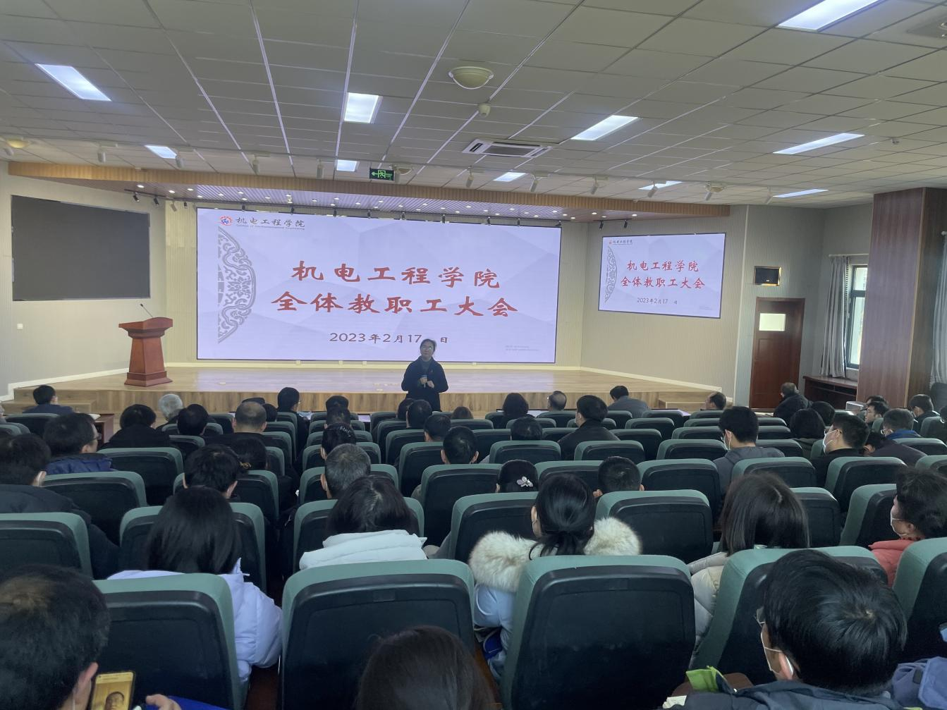 为提前谋划学院新学期工作安排,推进学院高质量发展,确保新学期工作平稳有序进行。2023年2月17日下午,澳门十大信誉好的网站全体在机电楼530召开学院工作部署会。学院党委书记任允晓,院长何燕,党委副书记兼副院长肖强,副院长张斌、张卫锋、李剑光及学院全体教师参加会议。