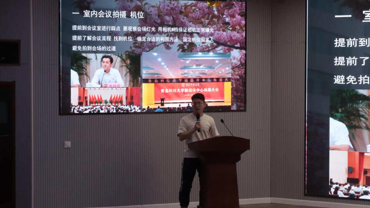 培训会上,学校融媒体中心闫育铭首先介绍了新闻宣传的重要性。随后重点讲解了宣传报道的结构及撰写技巧,从新闻写作、账号定位、标题选取技巧及内容选题等方面阐述了宣传报道的特点和撰写稿件的基本知识。
