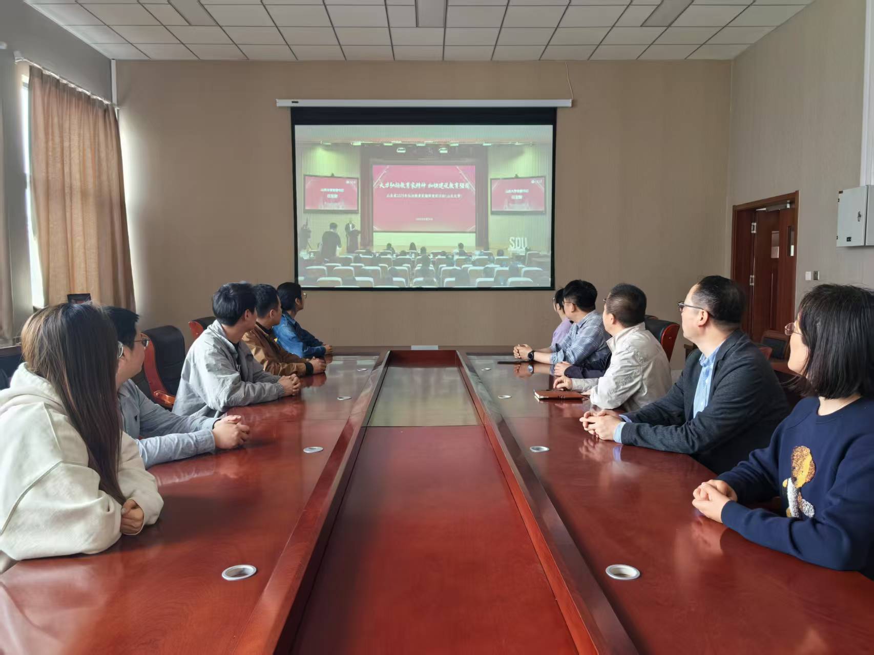 4月24日上午,学院组织“弘扬教育家精神宣讲活动”直播活动在D3-518会议室进行,学院党政领导班子、专业课教师代表和全体辅导员集中观看,其余教师通过云端自行收看学习。