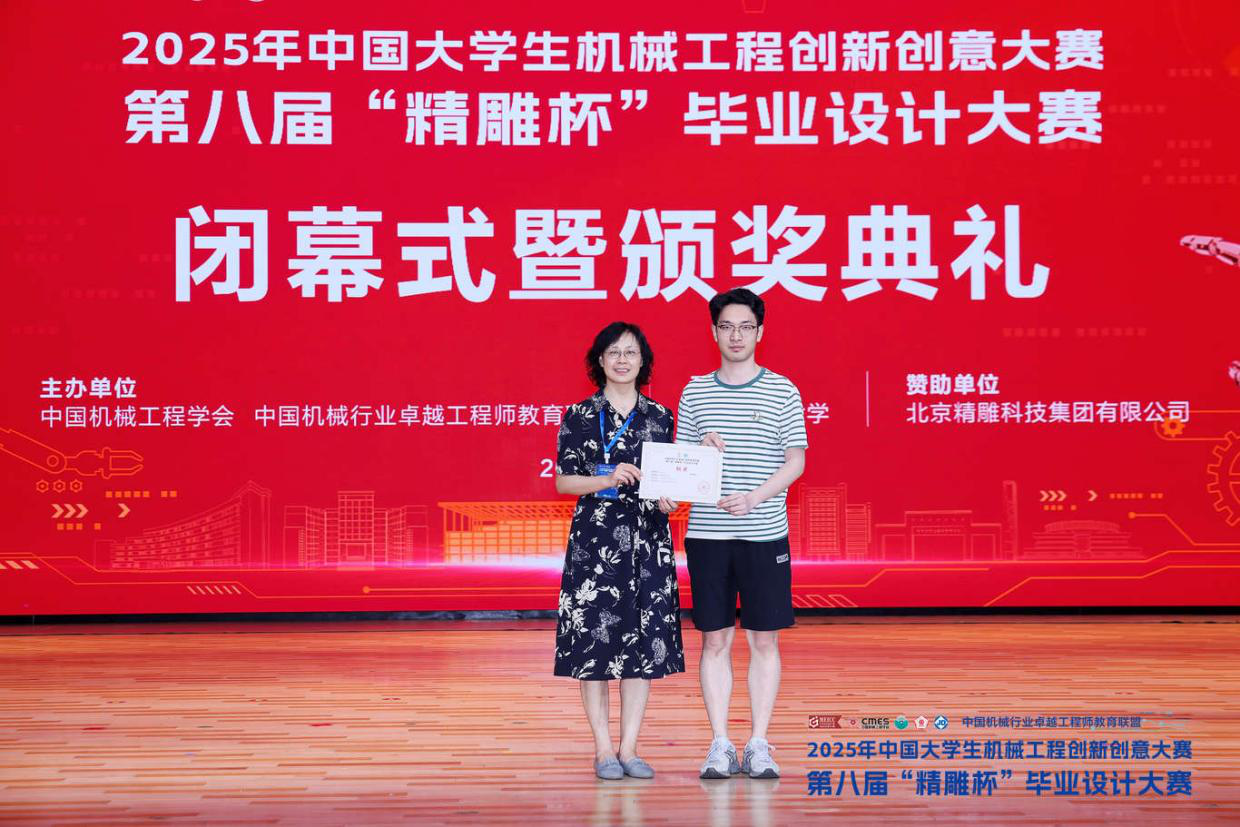 据悉,本次大赛由教育部高等教育司、高等学校机械类专业教学指导委员会指导,中国机械行业卓越工程师教育联盟、中国机械工程学会共同主办,是一项具有导向性、示范性的机械类专业毕业设计竞赛。本次大赛共有全国148所高校的1523项作品参赛,创历届参赛项目数新高,决赛共设12组(10组个人项目,2组团队项目)进行分组答辩,各组得分最高的作品进入金奖角逐赛(2项金奖,10项银奖),各组得分排名2-3获得铜奖(24项),排名4-12获得优秀奖,其他为佳作奖。
