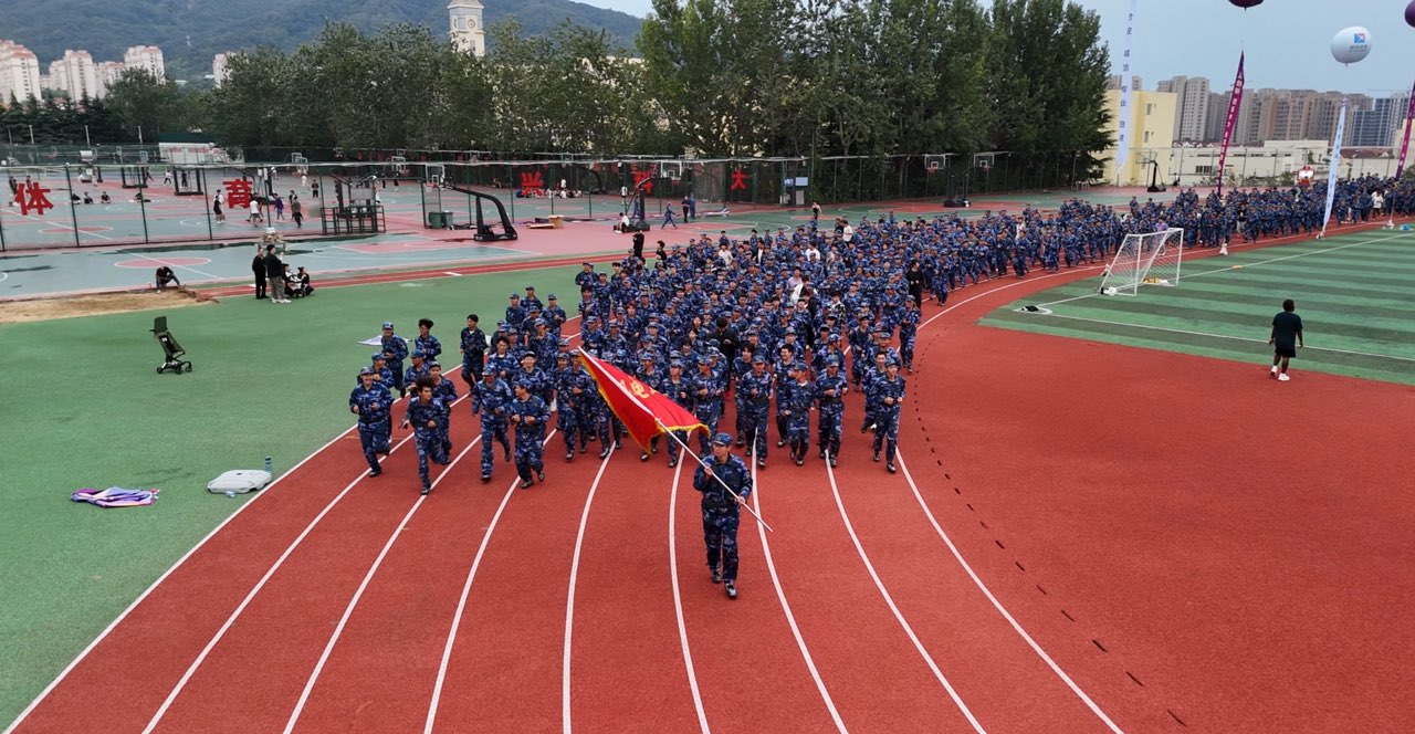 9月27日,澳门十大信誉好的网站2025级新生军训成果汇演暨开学第一跑在崂山校区南苑田径场举行。领步科技总经理丁建鹏、学院党委书记任允晓、党委学生工作部副部长李春家、教务处专职教学督导员楚晓东和917名2025级本科新生参加活动,学院党委副书记杨小明主持活动。