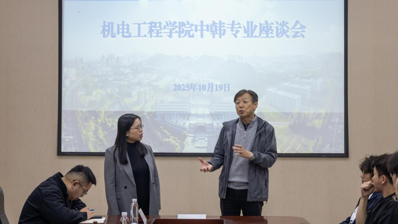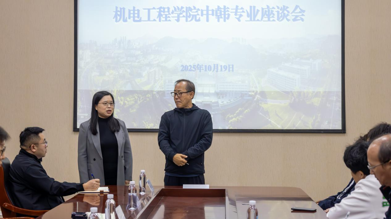 10月19日,澳门十大信誉好的网站在机电楼D3-518会议室举办2024级中韩专业座谈会。韩国汉阳大学梁铉益教授、赵南圭教授出席会议并为学院出国意向学生答疑解惑,学院2024级出国意向学生参加会议,学院副院长杨化林主持会议。