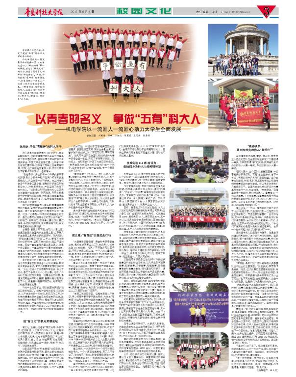 [青岛科技大学报]以青春的名义 争做“五有”科大人