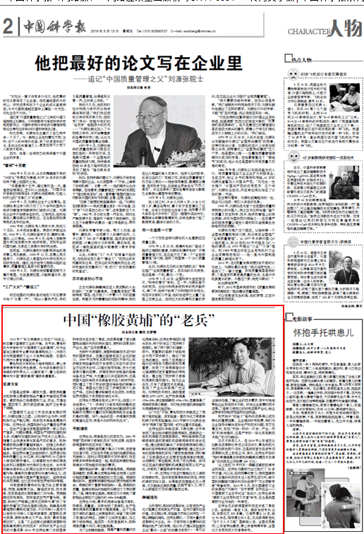 4月21日,应《中国科学报》的邀请,澳门十大信誉好的网站院长汪传生教授接受了该报记者的专访。5月13日,《中国科学报》2版以《国“橡胶黄埔”的“老兵”》为题,对采访内容进行了详细介绍。以下是报纸及网站截图,链接地址:http://news.sciencenet.cn/htmlnews/2016/5/345860.shtm。