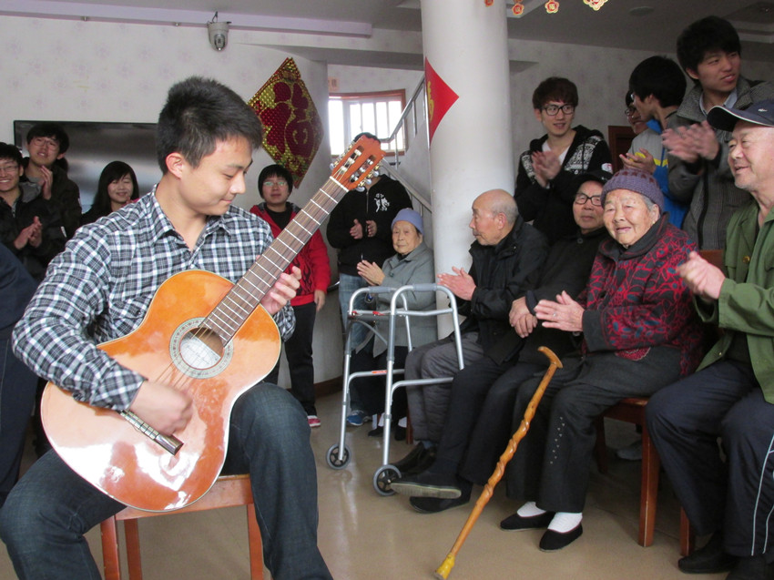 义工队第一小组们先后到青岛市崂山区长乐居敬老院、崂山区恒生老年公寓进行志愿活动,义工们与老人聊天、下象棋、读报纸等拉近了与老年人的距离,并陪老人晒太阳、唱歌、看电视,真正做到了与老人同乐。最后,义工们帮着清洁卫生,为老人们提供干净清洁的生活环境。义工队第二小组先后到青岛市四方区一癫痫儿童家庭、青岛市金色童年自闭症儿童训练中心开展志愿活动,义工们为小朋友们带来了精彩的文艺节目,有可爱的兔子舞,也有为大家所熟知的数鸭子儿歌,更有得到所有小朋友喜爱的动物话剧。表演过程中,很多小朋友拿出了自己的节目,花式多样的跳绳,精妙绝伦的拉丁舞,而一首感人至深的《最美的歌儿献给妈妈》更是让大家赞叹不已。