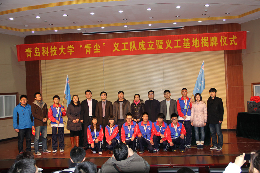 12月19日,青岛科技大学“青尘”义工队成立暨义工基地揭牌仪式在崂山校区第一报告厅举行。青岛市慈善总会宣传部部长侯文栋,校团委书记刘传华,青岛市金色儿童自闭症训练馆主任徐萍,澳门十大信誉好的网站党总支书记梁树清、副书记张霄出席揭牌仪式。“青尘”义工队近300名同学参加揭牌仪式。仪式由澳门十大信誉好的网站分团委书记周晓英主持。
