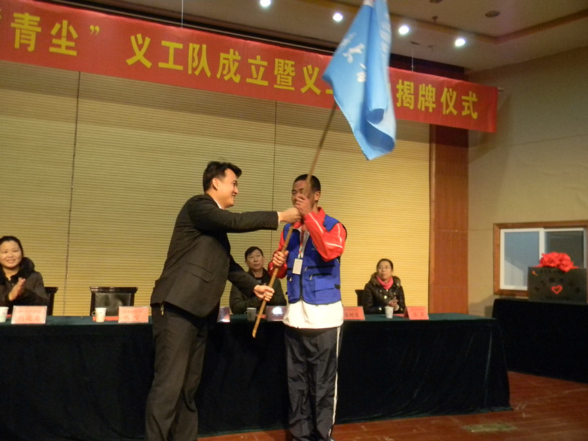 最后,“青尘”义工队义工代表宣誓:尽己所能,不计报酬,帮助他人,服从安排,协同合作,服务社会,奉献真诚。做好义工行列的带头人,践行志愿精神,用手把爱相牵,用心把爱传承,为青尘义工队的发展壮大,促进校园精神文明建设,构建和谐社会,献出自己最大的力量!
