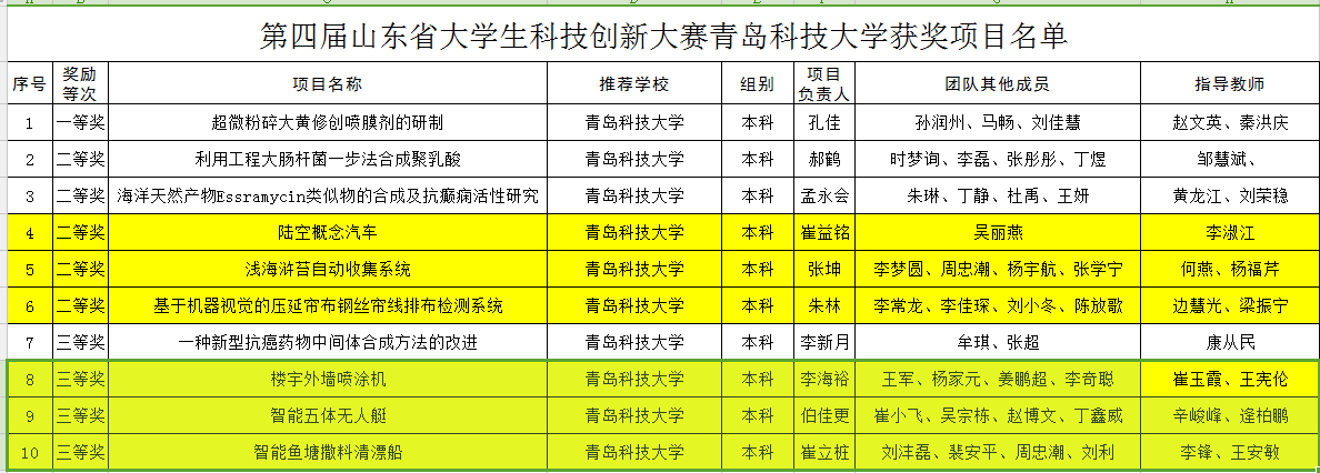 近日,山东省教育厅下发《山东省教育厅关于公布第四届山东省大学生科技创新大赛获奖名单的通知》(鲁教高字[2017]12号)。青岛科技大学荣获优秀组织奖,共荣获一等奖1项,二等奖5项,三等奖4项,其中澳门十大信誉好的网站获二等奖3项,三等奖3项,参赛作品数量和获奖数量位居学校前列。