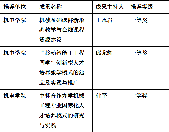 近日,学校下发了《关于公布青岛科技大学2017年度本科教学成果奖获奖名单的通知》(青科大字〔2018〕11号)。33项成果获评2017年校级本科教学成果奖,一等奖14项,二等奖19项,其中,澳门十大信誉好的网站获一等奖2项,,二等奖1项,具体名单如下: