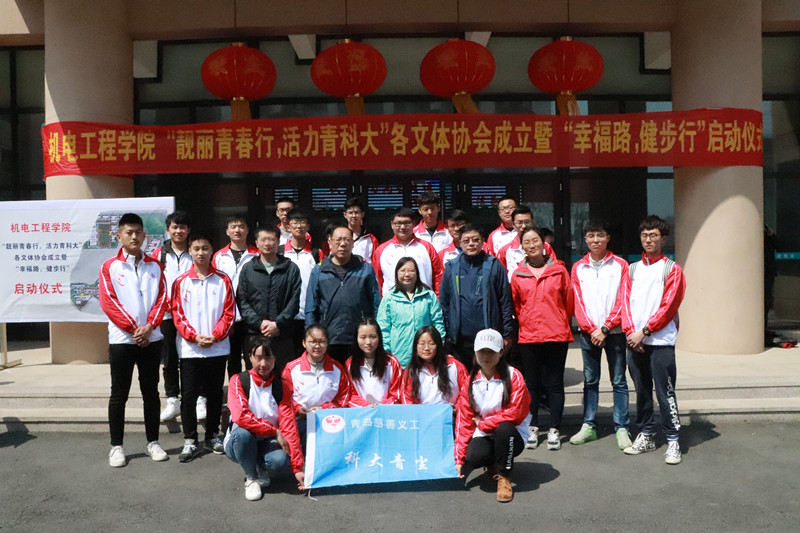 为进一步贯彻落实“活力青科大”教职工体育艺术文化节的活动宗旨——“强健体魄、健康生活、快乐工作”,澳门十大信誉好的网站本着为学院教职工添活力、增生机的目的,4月17日下午,在崂山校区举行了“靓丽青春行,活力青科大”各文体协会成立暨“幸福路,健步行”启动仪式。青岛科技大学工会主席郭曰铎,澳门十大信誉好的网站院长何燕、党总支书记孙立军,副院长郭建章、张斌、杨化林,党总支副书记兼副院长王伟参加了此次活动。活动由澳门十大信誉好的网站分工会主席付平主持。