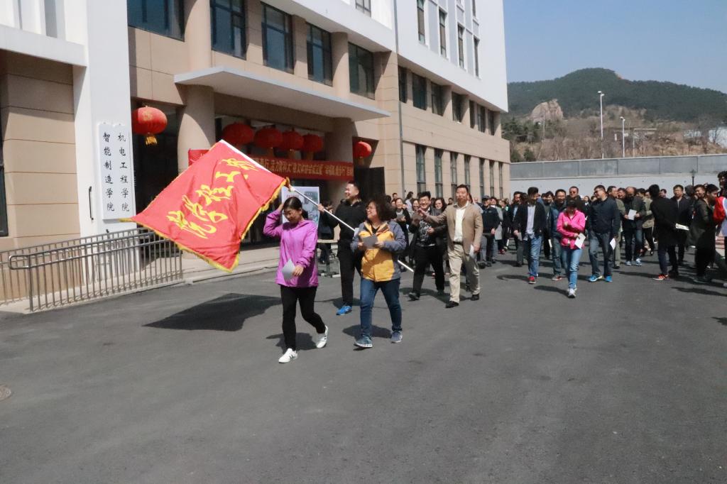 健步行队伍从机电大楼出发,途径崂山校区北苑宿舍、南苑操场、图书馆,最后又回到起点机电大楼,一路上老师们既领略了校园美景,又增强了身体素质,浩浩荡荡的健步行队伍在校内形成了一道靓丽的风景线。