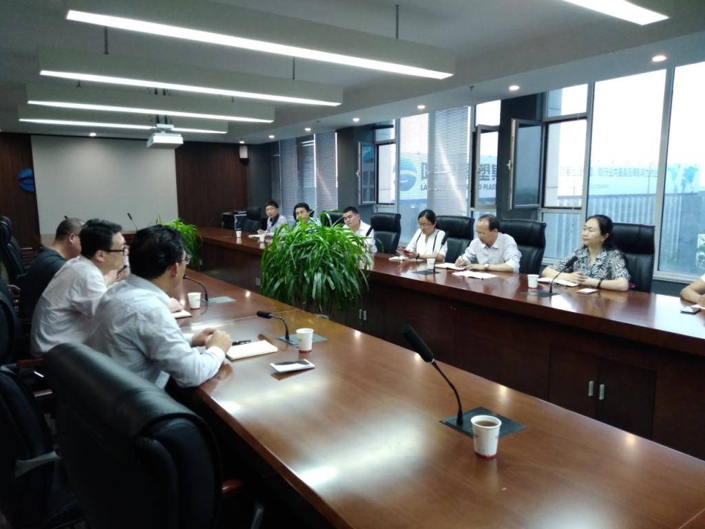 在山东陆宇集团,何燕一行参观了公司的成型机车间,听取了陆宇集团董事长印振同和副总经理叶明宏、王东海关于集团和成型无人车间建设规划情况。双方就成型机无人车间工厂模型建设、车间布局与优化、集成化无人成型机研发、产品生命周期管理系统及应用(PLM)、智能制造执行系统(MES)和智能物流系统研发(WMS)等方面进行了深入探讨,并就其中的数字化车间重构、无人车间生产过程信息化管理体系和系统集成等关键技术做了交流,现场达成初步合作意向。双方表示,在成型机数字化、智能化和无人化以及学生实习实训基地建设方面,将利用各自优势展开全面合作。