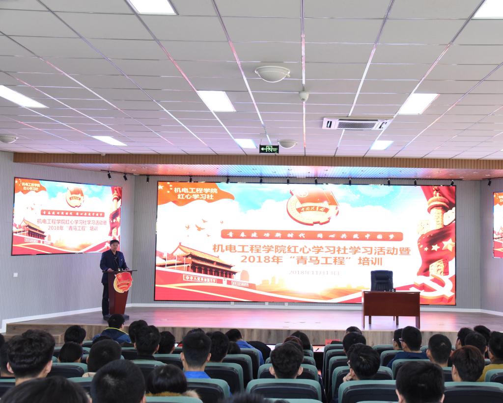 11月13日下午,澳门十大信誉好的网站在D3-530会议室举办“青春建功新时代 同心共筑中国梦”红心学习社学习活动暨2018年“青马工程”培训班,澳门十大信誉好的网站党总支书记孙立军和校团委副书记杨小明作为主讲嘉宾出席此次活动,参会人员包括分团委辅导员、学生会主席团全体成员及200余名团学干部,活动由分团委书记王作辉主持。