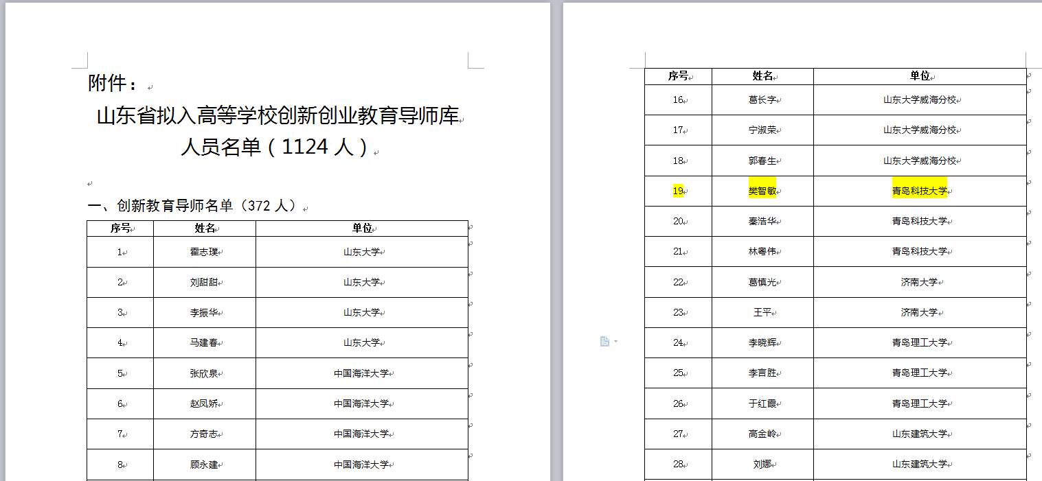 近日,山东省教育厅对山东省第二批拟入高校创新创业教育导师库导师人选名单进行公示,澳门十大信誉好的网站樊智敏教授榜上有名。