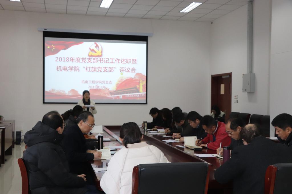 根据上级有关文件精神和相关部署要求,1月18日上午,澳门十大信誉好的网站在机电大楼518会议室举行2018年度党支部书记工作述职暨澳门十大信誉好的网站“红旗党支部”评议会。校纪委副处级纪检监察员赵丰、澳门十大信誉好的网站党总支委员及党建组织员鲁伟等参加了会议。会议由党总支副书记兼副院长王伟主持。