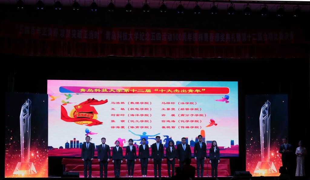 王敏也上台领取了青岛科技大学第十二届“十大杰出青年”奖项。