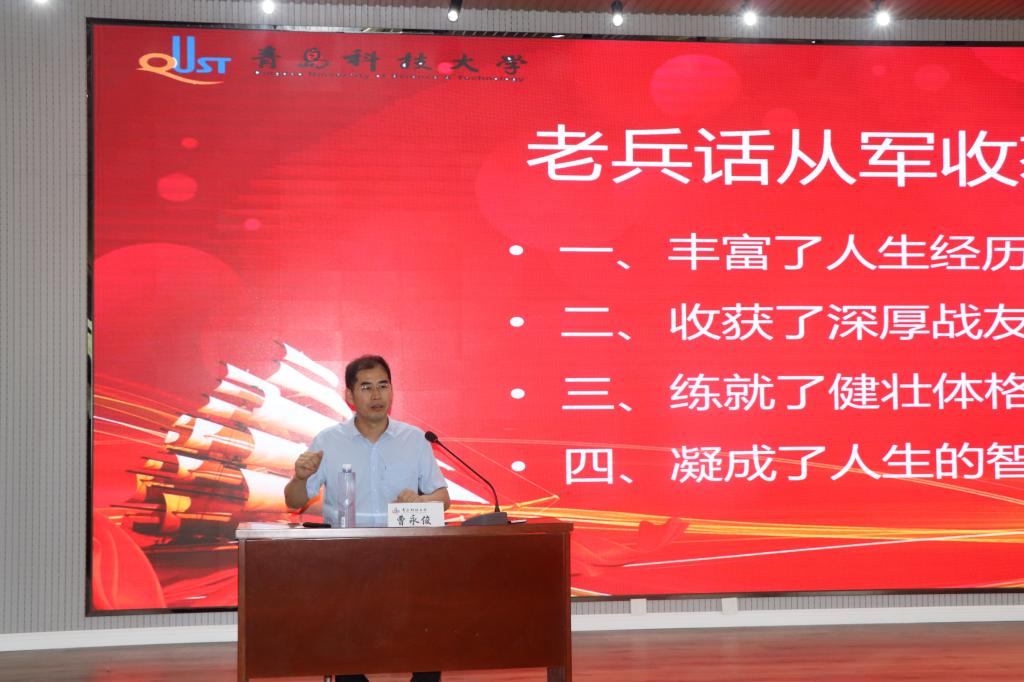 曹永俊处长以《男儿何不带吴钩 收取关山五十州》为题为机电学子做了宣讲。他结合自身入伍经历,从丰富人生经历、收获战友情谊、练就健壮体格、凝结人生智慧等方面激励学子投笔从戎。并对征兵就学、就业、经济补助等方面进行了政策讲解。