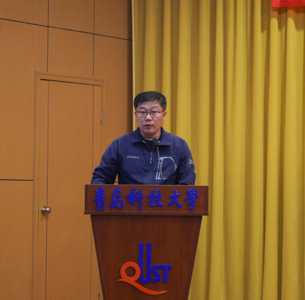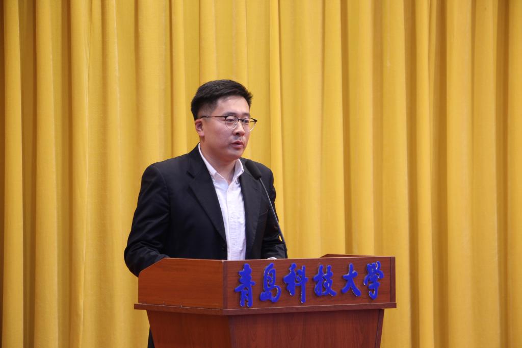 曲智强宣读《关于开办“扬宿舍文化,展机电风华”宿舍文化节活动的通知》。2019级新生代表王立瓒同学进行了表态发言。