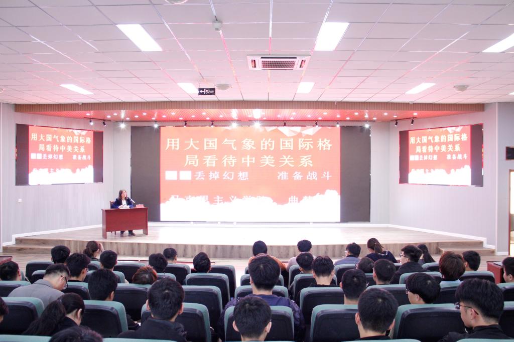 专题教育过程中,曲慧敏紧跟当前时政热点,深入浅出、鞭辟入里,以《用大国气象的国际格局看待中美关系》为主题,从中美贸易摩擦的背景入手,阐释了世界正处于百年未有之大变局、新兴国家受打压的历史规律,通过进一步揭示了中美贸易摩擦的实质、中美关系的实质,从而提出了处理中美关系的积极对策:一是要丢掉幻想,准备战斗,坚决维护国家利益,绝不因为任何的贸易摩擦而损失国家利益;二是要坚定不移走中国特色社会主义道路,不断提升国家安全意识,深度参与全球经济治理和相关规则的制定,继续实施“一带一路”倡议;三是促进经济提质增效,努力提升我国在全球价值链中的竞争力;四是注重人才、高等教育。