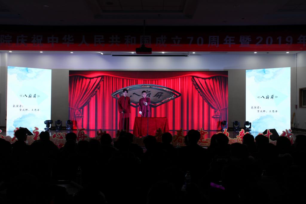 11月27日晚,澳门十大信誉好的网站在崂山校区第二报告厅举办庆祝中华人民共和国成立70周年暨“不忘初心再出发,青春建功新时代”2019年迎新晚会。澳门十大信誉好的网站副院长郭建章、学院党总支副书记兼副院长王伟、副院长张卫锋、分团委书记王作辉、所有专兼职分团委老师及2019级班主任到场。