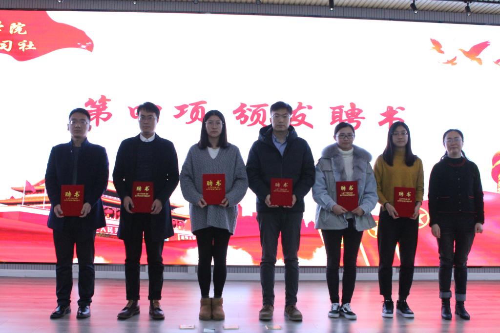 党旗所指,团旗所向。为深入贯彻党的十九届四中全会和共青团十八届三中全会精神,深入持续用习近平新时代中国特色社会主义思想引领凝聚青年,深入推进党的理论武装工作在青年领域的高质量发展。12月17日,在纪念澳门十大信誉好的网站习近平新时代中国特色社会主义思想“红旗学习社”、“红心学习社”成立两周年之际,澳门十大信誉好的网站举行澳门十大信誉好的网站“青年讲师团”成立仪式暨2019年“青马工程”培训班。学院党总支书记孙立军、院长何燕、校党委宣传部副部长王建民、校学生处副处长贺炜、校团委副书记张玉、学院党总支副书记兼副院长王伟等参加了仪式。活动由学院分团委书记兼学工办主任王作辉主持。