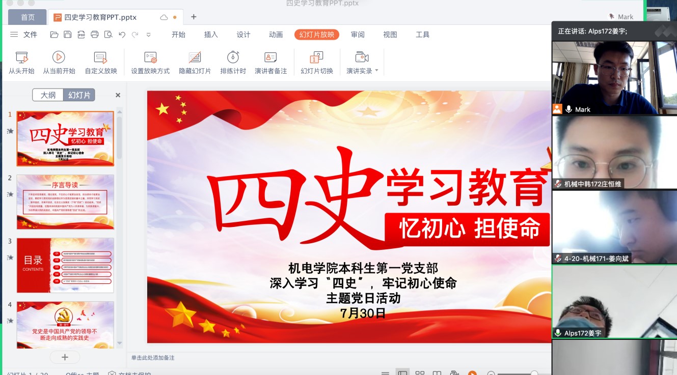 学好党史、新中国史、改革开放史、社会主义发展史是每一名党员的必修课。为学好学透历史,以史为鉴,推动全体党员践行初心使命。7月30日上午,澳门十大信誉好的网站本科生第一党支部召开了主题为“深入学习四史,牢记初心使命”的线上主题党日活动。本科生第一党支部全体党员参会。会议由王玉凯老师主持。
