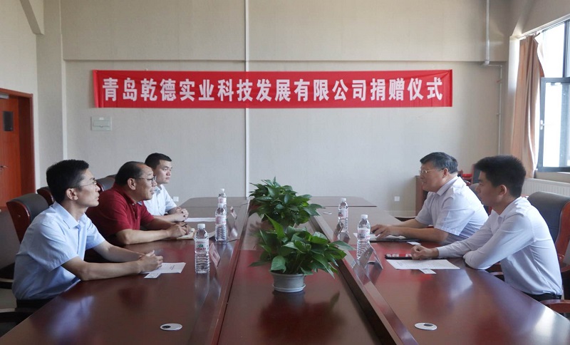 捐赠仪式前,孙立军书记首先对青岛乾德实业科技发展有限公司副总余瑞云一行表示欢迎和感谢,指出,学校和学院70年的发展离不开社会众多友好人士、校友的支持和帮助,相信此次捐赠必将成为双方合作的新起点,携手共进,共创未来。随后,学院党委书记孙立军与公司副总余瑞云针对人才培养、科技转化、技术支撑等方面进行了深入探讨。