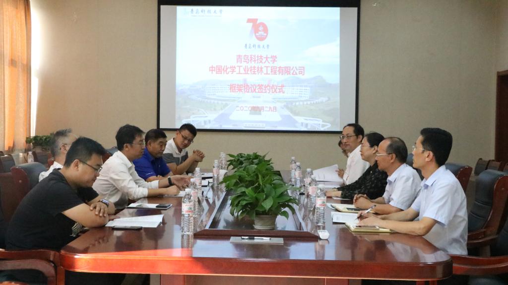 9月20日下午,澳门十大信誉好的网站与中国化学工业桂林工程有限公司框架协议签约仪式在机电楼518会议室举行。中国化学工业桂林工程有限公司党委副书记、总经理张磊、二级专务江建平、公司销售总监杨凤海,澳门十大信誉好的网站院长何燕、副院长杨化林、李剑光、党委副书记兼副院长肖强出席签约仪式。