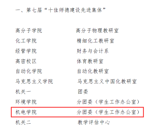 过程装备与控制工程系、新能源科学与工程系和澳门十大信誉好的网站分团委(学生工作办公室)荣获2019年度先进集体名单。
