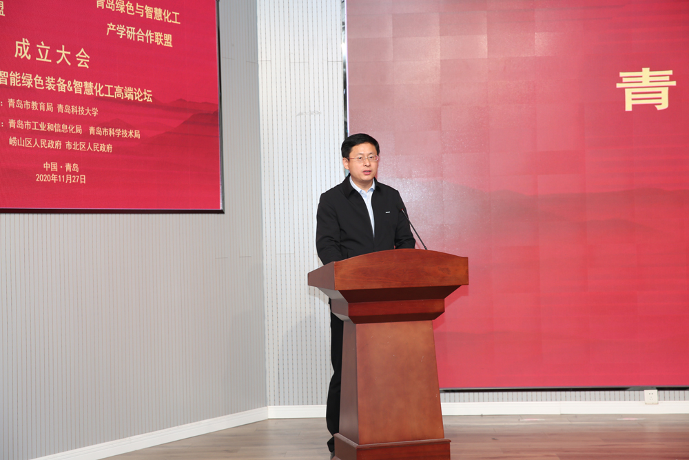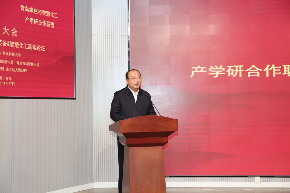 晁永强向联盟的成立和论坛的召开表示热烈的祝贺。他指出,装备制造和化工新材料是国民经济重要支柱产业之一,随着产业的转型升级,智能制造和绿色化工成为战略性新兴产业的重要组成部分。青岛科技大学的化学工程、机械工程等学科实力雄厚,成果转化成效突出,与青岛市的主导产业非常契合。学校依托两个学科,联合高校、科研院所、行业、企业共同成立产学研合作联盟,通过“政校行企”多方合作,构建面向企业需求导向的协同创新体系,将有力促进青岛市装备制造和高端化工等产业的转型升级。他希望新成立的两个产学研合作联盟,进一步对标国家在相关产业领域的重大发展战略,紧密对接青岛市产业发展实际和工业企业需求,积极搭建服务平台、合作平台和创新平台,加快引进和培养一批智能装备和绿色智慧化工技术领域的高端研发和应用型人才,积极推进产业关键技术与工业互联网的融合发展,推动创新创业,为青岛高质量发展提供坚实基础和坚强支持。