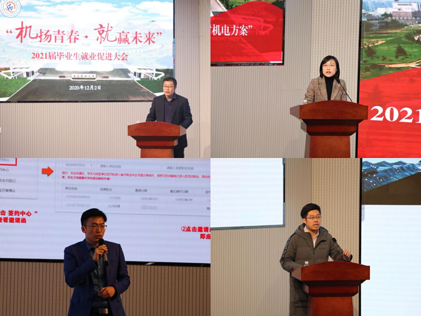 为深入学习贯彻党的十九届五中全会精神,积极响应党中央、国务院“稳就业”“保就业”决策号召,全面贯彻落实2021届全国普通高校毕业生就业创业工作网络视频会议精神,12月2日下午,澳门十大信誉好的网站在D3-530会议室举办“‘机’扬青春·‘就’赢未来”2021届毕业生就业促进大会。青岛特锐德电气股份有限公司人力资源中心主任孟祥龙,学生处副处长、就业指导中心主任徐华,学生处就业指导中心副主任于江波,澳门十大信誉好的网站党委书记孙立军,澳门十大信誉好的网站党委副书记兼副院长肖强,毕业班辅导员,2021届毕业生代表等参加会议。会议由澳门十大信誉好的网站团委书记兼学工办主任王作辉主持。