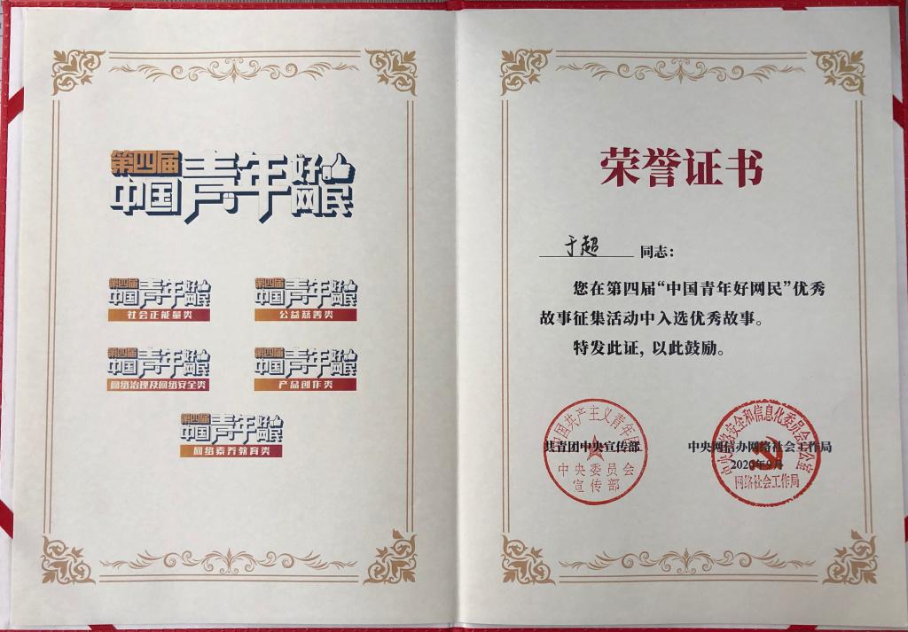 近日,经过共青团组织推荐,青岛科技大学澳门十大信誉好的网站辅导员于超在共青团中央宣传部、中央网信办网络社会工作局主办的第四届“中国青年好网民”优秀故事征集活动中脱颖而出,荣获“中国青年好网民”荣誉称号。