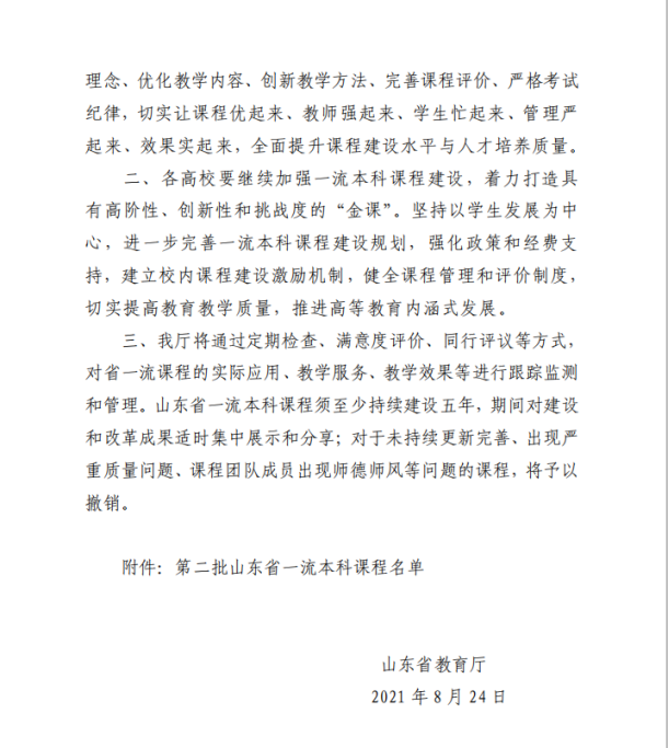 在山东省教育厅日前发布的《关于公布第二批山东省一流本科课程认定结果的通知》(鲁教高函〔2021〕24号)中,澳门十大信誉好的网站何燕教授牵头的《传热学》和付平教授牵头的《机械制造基础》均被认定为山东省一流本科课程(线下课程),其中何燕教授的《传热学》被推荐参评国家一流课程。