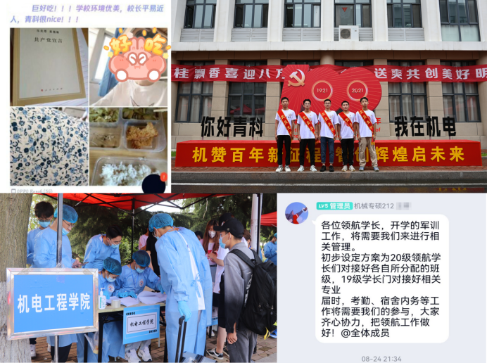 系统部署、礼赞时代——引导学生“立大志”。学院党政领导班子成员召开专题会议,协调、部署新生入学事宜,明确任务、压实责任,有条不紊地推进学院迎新工作。今年是中国共产党成立100周年,设置迎新红毯,学生经“机赞百年 智创辉煌”迎新拱门,来到建党100周年标志合影板。组织学生读《习近平与大学生朋友们》等书籍,观看《我和我的祖国》等影片,培养学生的家国情怀。