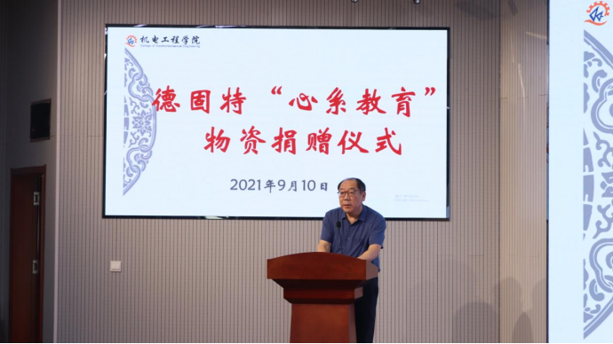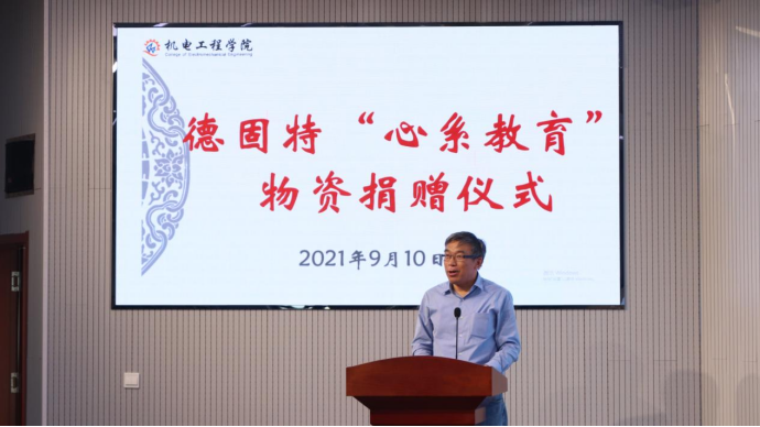 9月10日,适逢第37个教师节,澳门十大信誉好的网站举办德固特“心系教育”物资捐赠仪式。青岛德固特节能装备股份有限公司董事长魏振文、副总经理崔建波、研发部部长金延超、综合部部长李红娟、学校原党委副书记张元利、澳门十大信誉好的网站党委书记孙立军、院长何燕及教师代表参加活动。
