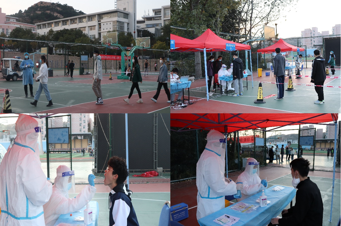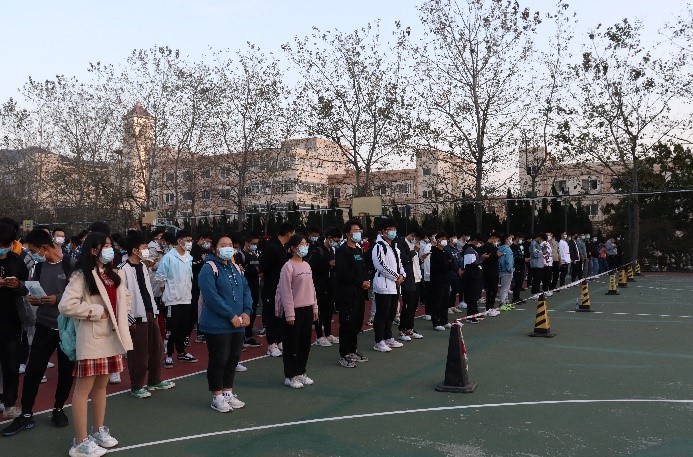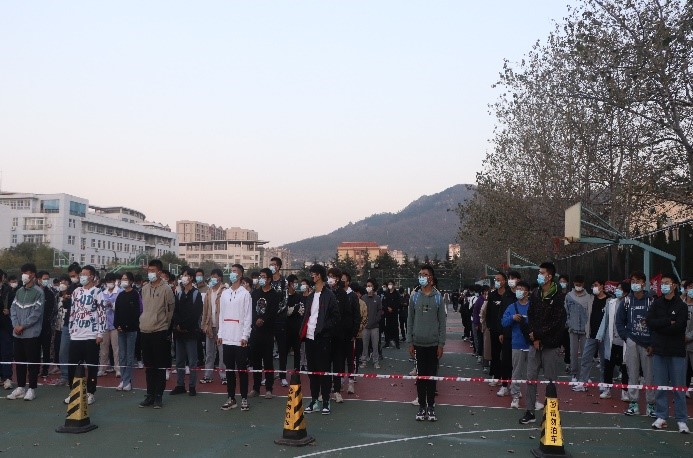 为进一步提升学校疫情防控应急处理能力和水平,根据省市有关文件精神,2021年10月27日下午,澳门十大信誉好的网站在崂山校区篮球场组织开展了全员核酸检测实战演练。学院组织全体师生积极参与此次核酸检测实战演练,在短时间内将人员聚齐,紧张有序地在警戒线外等候。