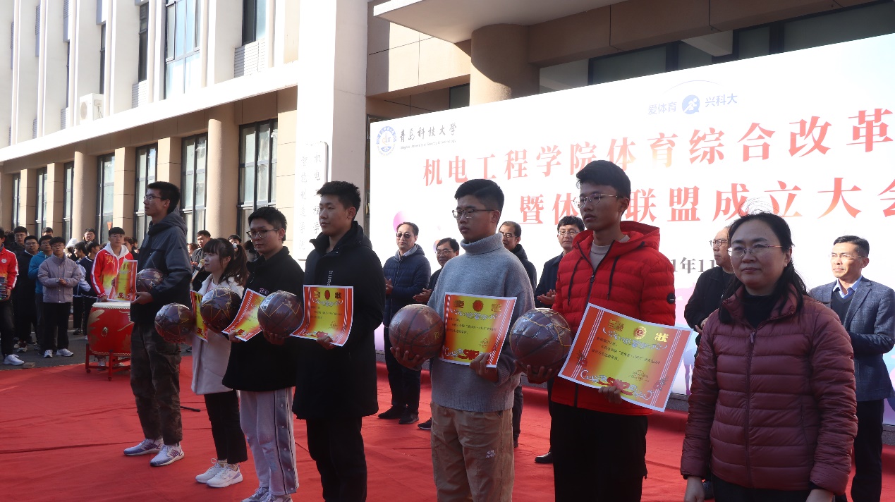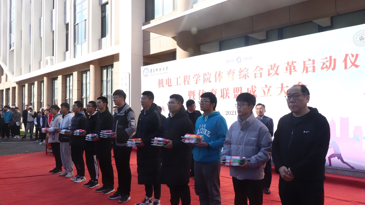 为积极响应学校体育综合改革,助力学院体育工作高质量发展。11月9日下午,澳门十大信誉好的网站体育联盟综合改革启动仪式暨体育联盟成立大会举行在机电大楼前举行。学校团委书记毛常明,学生处副处长曹永俊,学院党委书记孙立军,澳门十大信誉好的网站院长何燕,学院党委副书记兼副院长肖强,副院长张卫锋、李剑光以及学院团委全体专职兼职辅导员以及学生代表参加本次活动。