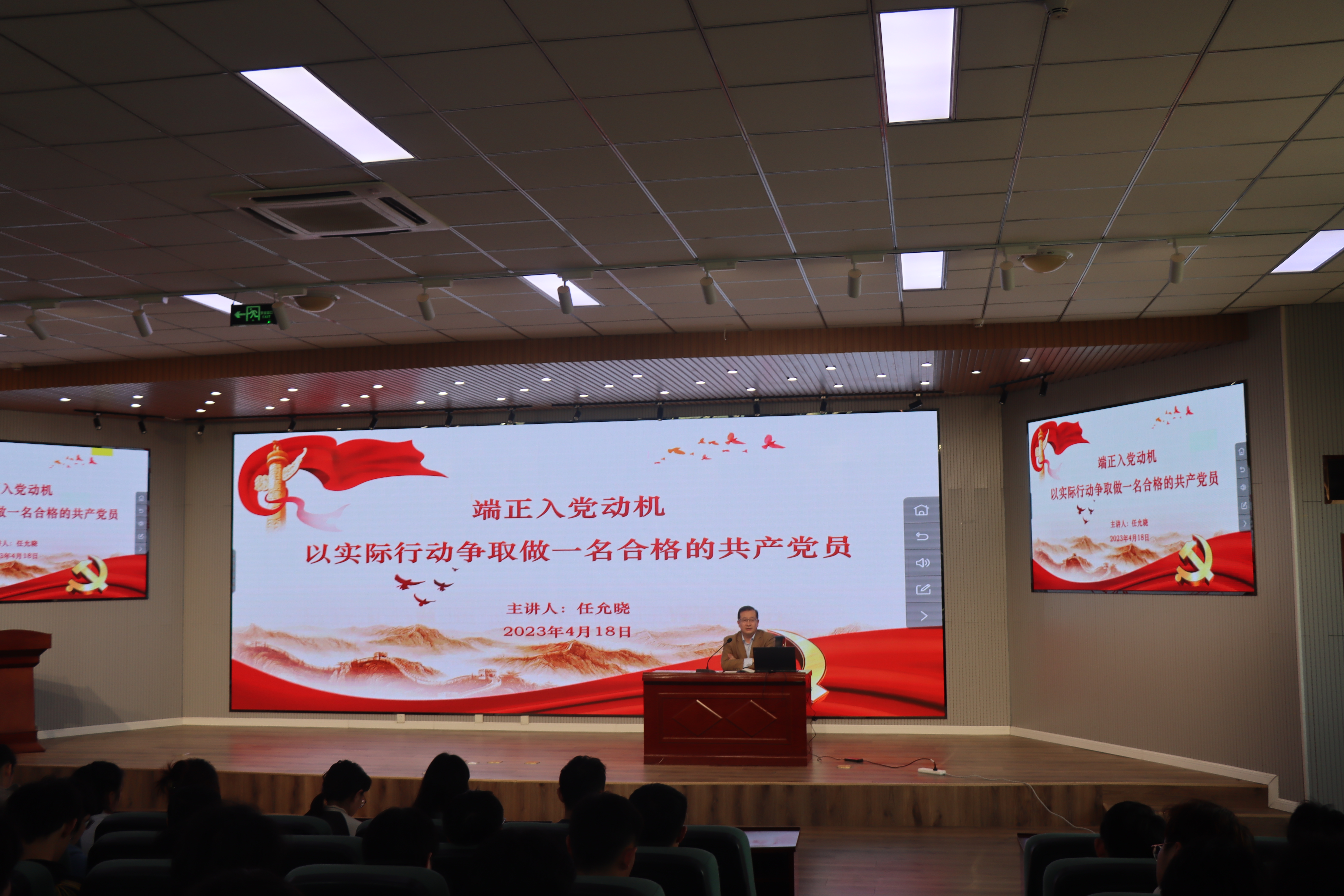 为了加强对入党积极分子的培训工作,深化党的思想引领,进一步提高入党积极分子的基础理论素养,4月18日,澳门十大信誉好的网站党委书记任允晓为学院2023年春季学期入党积极分子讲授了主题为“端正入党动机,以实际行动争取做一名合格的共产党员”的专题党课,214名学员参加了党课。
