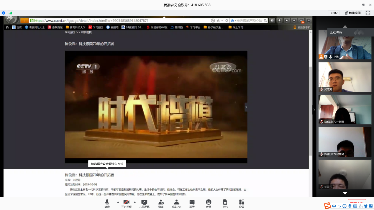 最后,党支部书记指导大家观看了时代楷模的视频,指出我们最大的依靠是一个强大的国家,人人贡献自己的力量,结合自身,付诸行动,做一些自己力所能及的小事。