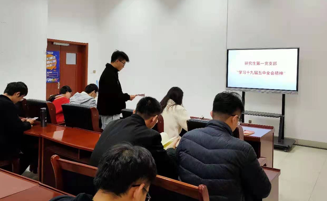 11月17日14时,澳门十大信誉好的网站研究生第一党支部在机电楼529会议室开展“十九届五中全会精神”学习交流。