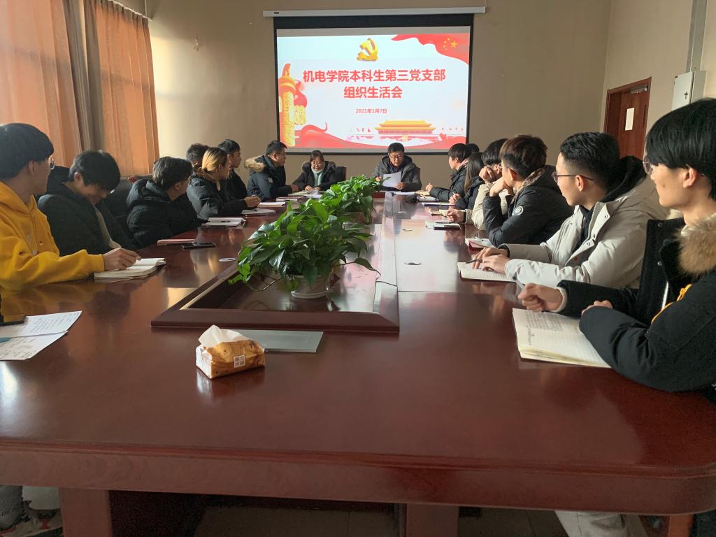 为落实学校党委组织部《关于召开基层党支部组织生活会及开展民主评议党员工作的通知》要求,2021年1月7日下午,澳门十大信誉好的网站本科生第三党支部在机电楼518会议室召开了2020年度组织生活会。澳门十大信誉好的网站党委委员付平老师对会议进行了点评,会议由支部书记王作辉主持。