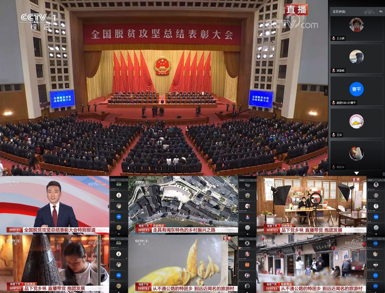 2月25日,澳门十大信誉好的网站本科生第四党支部组织集中学习了全国脱贫攻坚总结表彰大会。大会在北京人民大会堂隆重举行,中共中央总书记、国家主席、中央军委主席习近平向全国脱贫攻坚楷模荣誉称号获得者颁奖并发表重要讲话。