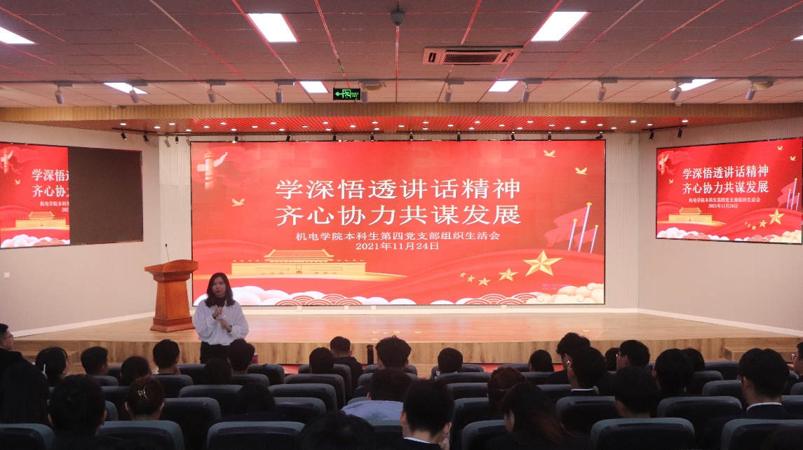 11月24日,澳门十大信誉好的网站本科生第四党支部在机电530召开“学深悟透讲话精神,齐心协力共谋发展”组织生活会。会议由党支部书记孙坤岩主持,全体支部党员参加。